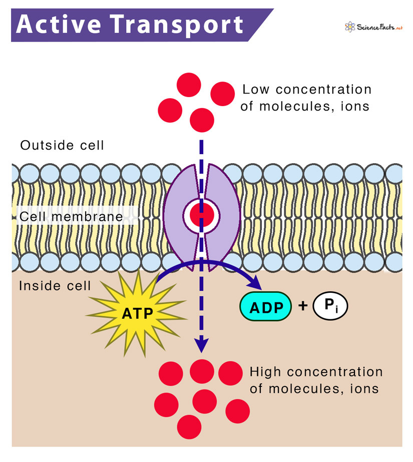: 에너지 의존성 능동수송으로 세포막을 통과하기도 합니다. ATP가 ADP로 가수분해되면서 에너지를 얻습니다.