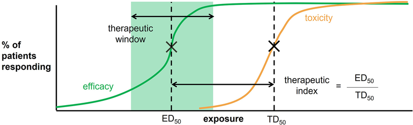 우리 신체는 매우 복잡해서 같은 양의 약을 먹었을 때 모든 사람이 같은 효과를 경험하지 않습니다. 치료계수(therapeutic index, TI)는 특정치료에서 약물의 상대적인 ‘안전한 사용 범위’를 나타내는 지표입니다.
