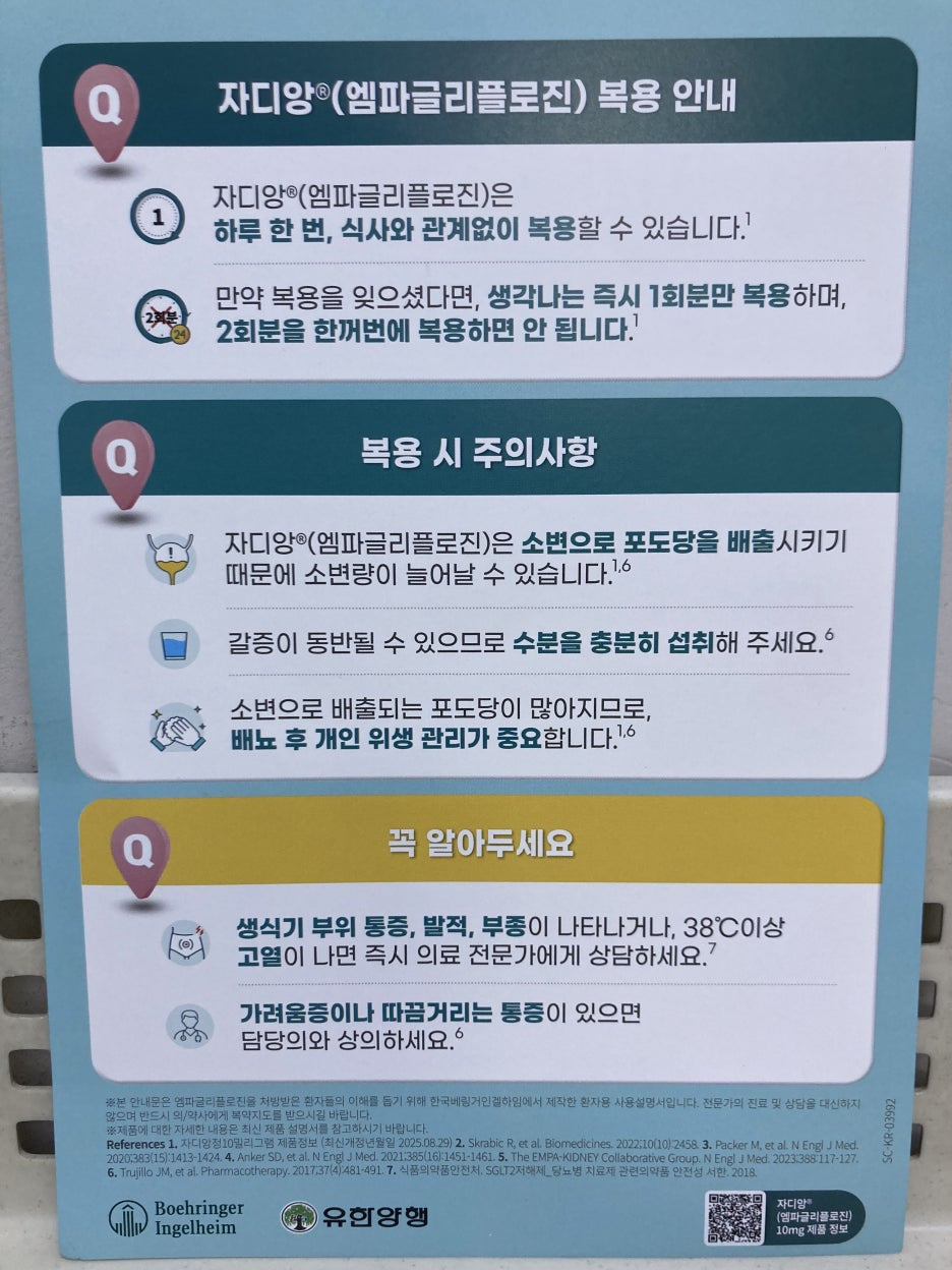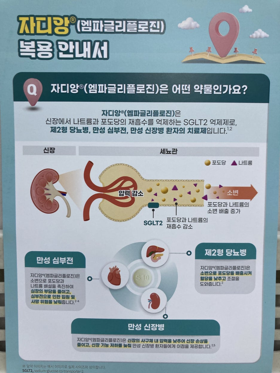 유한양행에서 나온 자디앙(empagliplozin, 엠파글리플로진) 환자용 설명서 첨부해봅니다 :)