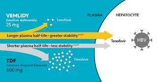 이 성분은 기존의 비리어드(Viread 성분명: Tenofovir disoproxil fumarate, TDF) 와 같은 계열의 약물이지만 더 낮은 용량으로도 같은 효과를 낼 수 있도록 만들어졌습니다.