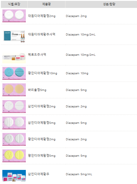 : 대원디아제팜정, 삼진디아제팜정, 바리움정, 명인디아제팜정